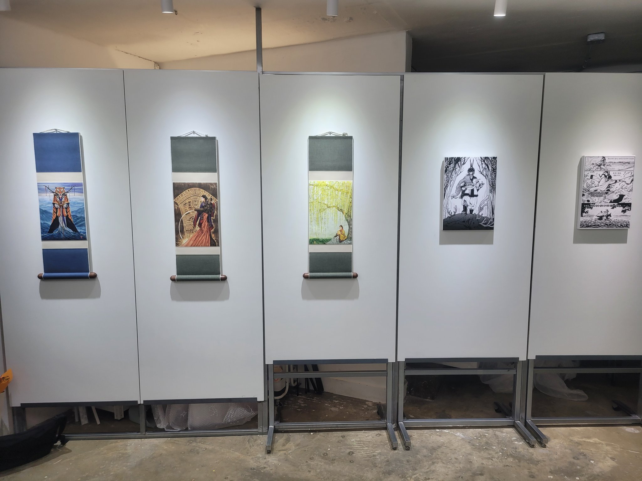 전시회에 전시 중인 그림 세 점 편집 이미지입니다!